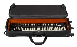 Our Gig Bags are custom fitted, heavy duty, and light weight for safely carrying/transporting your Hammond in comfort; and feature zippered pockets for cables, pedals, etc. All are embroidered with the Hammond Logo.
