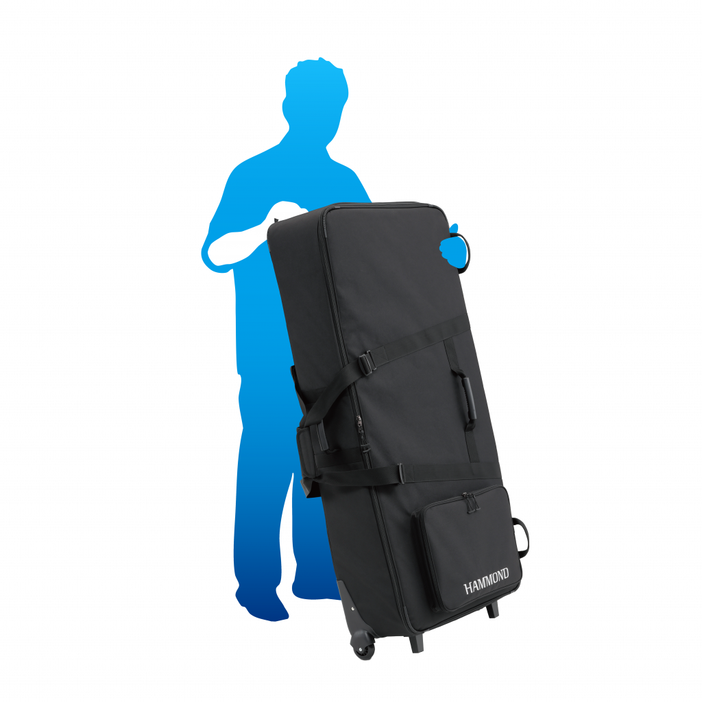The form-fitted SCC-XKD soft Gig Bag will keep your Hammond XK-7D (or Expanded XK-5) safe for transportation, even with the optional CU-1 “Half Moon” Leslie switch attached.  The wheels on the lower end will make moving easy, while your cords and accessories will accompany in the zippered pockets on the front of the bag.